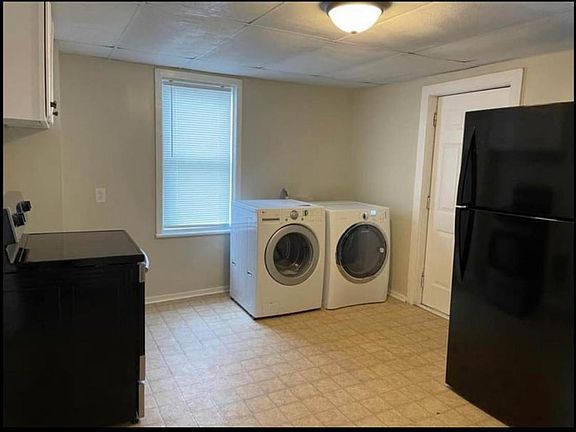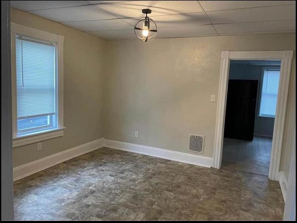 This apartment is a duplex. The house sets on a dead end street, minimal traffic, and quiet! Appliances shown are included (fridge, stove, washer and dryer), water (up to 6,000 units) included, trash included (household items ONLY, no large heavy items), other utilities such as electric, oil, sewer, etc. are not included, pets are accepted with a $50/pet/month fee. We do not accept section 8 or cobra at this time, sorry. Applicant eligibility criteria: -$40 application fee per adult over 18 on lease -must make 3x the monthly rent in monthly income as a household -clean background -good to excellent credit NO smoking. Renter pays utilities for the exception of water and household trash which is included in rent. Pets allowed for $50/pet/month pet fee. Off street parking for 2-3 vehicles.