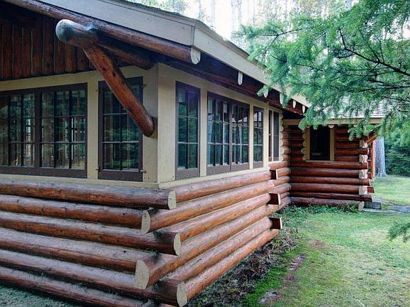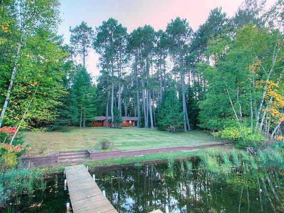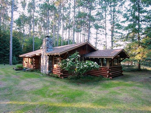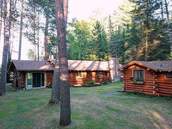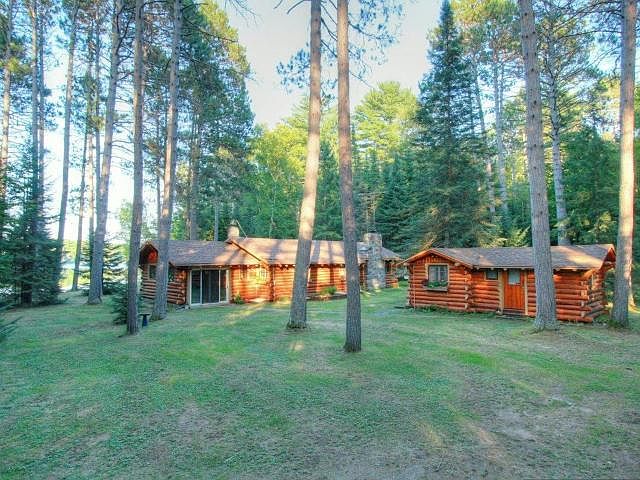 This Cy Williams sanctuary will have you in awe from the moment you enter the winding drive. Over 7.5 acres of sprawling wooded paradise, you will find nature abound. This private setting has 446' of frontage on serene, Gordon Lake, a private lake only allowing electric motors so tranquility is a given! Private wooded lot and your own personal sand beach for swimming along with a nice permanent pier. The rustic log cabin is inviting and bright, with fantastic lake views from nearly every room. End your day in front of the natural stone fireplace and take in the beauty of the pegged wood flooring and Norwegian Pine Log walls. Also includes a 2 bed guest cabin, with bath, for your overnight guests. This guest cabin is constructed with the same Norwegian Pine Logs and Cy Williams craftsmanship. Plenty of space for all of the toys with an oversized 2.5 car garage plus a 3-car garage currently being used as a workshop and storage.