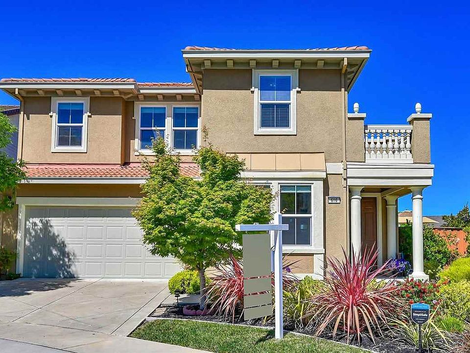 Situated in a Cul-de-sec, this house has everything you need, North East facing, desirable floor plan, 1 bed+1full bath downstairs, 20ft high ceiling in dining room. Gourmet kitchen, featuring upgraded cabinets, granite slab countertop, new mosaic full backsplash, SS appliances, engineered hardwood floor downstairs, custom draperies and blinds. 3 bed+3 full bath upstairs. A large loft upstairs.Master bedroom has a great view over the hills, new crystal ceiling light. Dual vanity sink with granite countertop in master bathroom, large walk-in closet.2 other bedrooms have dedicated bathrooms of each. One bedroom has a large balcony with hill view. Beautifully landscaped backyard, fruit trees including apricot and peach. Paver stone in backyard, no view of backyard neighbor. Great view over Mt. Diablo. 3 car garage. Owned solar panel generating 4KW per year. Walking distance to award winning DVHS. 1mile away from Safeway shopping center, mins drive to free way and city center.