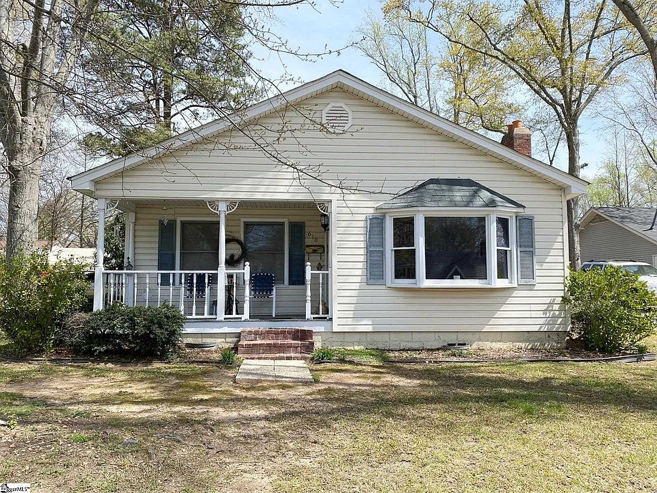 Charming 2 bedroom/1 bath home on a lovely 1/3 acre lot in Laurens. Mature landscaping and a pretty, sidewalk-lined street gives this home so much character. And it's within walking distance of the hardware store, grocery and dining. The home is a manageable size for someone wanting to downsize or would make a great starter home with 2 bedrooms and one full bathroom. Front door enters the light-filled living room and flows into the dining room. The back door entry is into the mud-room style laundry-room, perfect as a drop zone after yard-work or gardening. Functional kitchen with glass front cabinets and built-in pantry. Sellers have never used fireplace and it conveys as-is. Refrigerator, washer and dryer are negotiable.