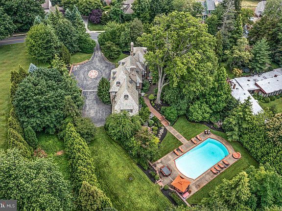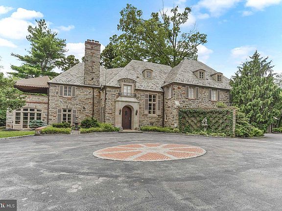Spectacular Main Line estate in Lower Merion Township. This very special English Manor home, built in 1931, embodies the rich past of that era while encompassing all the modern amenities for the most discriminating buyer. As you enter through the iron gates, this gracious property comes into full view and takes your breath away. Privately set on a circular driveway with courtyard, this roughly 9000 square foot stone Manor home is perfectly situated with impressive pool and custom brick path to an enchanting Koi pond. Once inside you’re greeted with an exquisite travertine and verde marble border entryway and a grand curved staircase. Adjacent to the entryway is an idyllic library. In this space, you are met with oak hardwood floors, large built-in bookshelves, The Great Room offers gleaming, herringbone hardwood floors, beautiful mouldings, an oversized gas marble fireplace, high ceilings, and three sets of french doors. The french doors lead out onto the patio and also into the sunroom, creating a beautifully seamless floor plan. The elegant sunroom, washed in sunlight, is a four-season room featuring flagstone flooring, recessed lighting, and beautiful ceilings. The true beauty of this room is the custom arched windows that look out onto the stunning property and allow the light to encapsulate the entire space. The dining area is adjacent to the kitchen and is highlighted by classic herringbone hardwood floors, floor-to-ceiling windows, decorative moldings throughout, and two built-in china cabinets to store your most treasured pieces of china, glassware, and serving pieces. The Gourmet chef's kitchen with large island features beautiful marble countertops, Subzero 48” refrigerator and freezer, Viking 48” oven and range, two sinks, a stunning terracotta floors with radiant heated floors and an expansive breakfast area. Walk up the wrought iron curved staircase to the second floor to the primary suite, three other bedrooms, a fitness room, and a convenient, second floor laundry room. The elegant primary suite encompasses a sumptuous ensuite bathroom complete with Carrera marble tiling, a large soaking tub with air jets, marble shower surround and radiant heated floors. The bedroom is spacious, featuring a wood-burning fireplace and charming french doors that lead to the covered deck. Luxurious dressing room, vanity alcove and separate walk-in closet create coveted closet spaces. The three additional bedrooms, fitness room and second floor laundry complete the second floor. The first additional bedroom features two impressive fitted closets, and is ensuite with its own completely renovated full bath with marble flooring and large shower. The second spacious bedroom shares another completely renovated with a lovely guest bedroom. There is a full gym on the second floor with separate, renovated bath just across the hall. And steps away, a second-floor laundry room that is spacious and so convenient. The third floor features an expansive hangout space that is carpeted throughout and a separate large room, perfect for crafts. And of course there is a bathroom and additional storage areas. The lower level offers a finished large room with amazing ceiling height, a fourth half bath and many other storage spaces. In addition this home has a whole-house generator, a sprinkler system, a three-car garage and a full slate roof. The landscaped grounds are both spectacular and enchanting. Custom lit, brick pathways lead you to the impressive heated pool, lounge areas and to a very special Koi pond which was so thoughtfully created and not to miss. Lastly, tucked away, there is a vegetable garden. Public records square footage does not include the lower level or the third floor. Look no farther than the timeless and rare home, in close proximity to award winning Lower Merion township schools, easy access to Center City (only 20 min away), and public transportation, fabulous shopping and restaurants.
