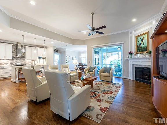 First floor living at it's best! Beautifully maintained home w/custom details throughout. Site finished hardwood floors, trey ceilings in dining & master, bay windows in office & master, crown molding and plantation shutters throughout, GORGEOUS white kitchen w/granite, mosaic glass back splash and center island overlooking family room. Gas range w/vent hood plus wall oven. Family room with gas fireplace and 8'pocket sliding door to screened porch! Fenced in and landscaped yard. Community pool! Hurry!