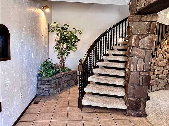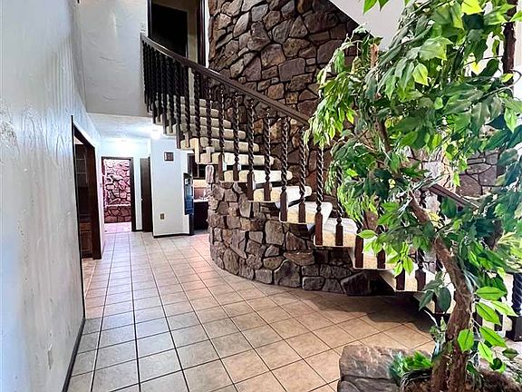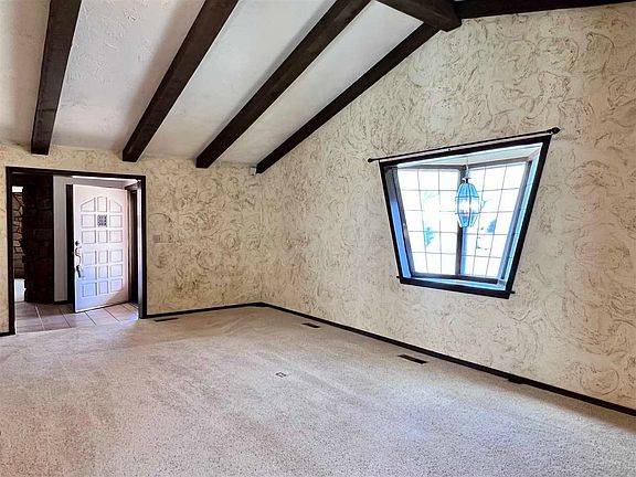 Looking for a one of a kind home!! Then look no further!! This home offers elegance, comfort, and modern amenities. The Castle-like design, combined with the lush outdoor space, creates a truly unique living experience. The living room has catherdral, beamed ceilings, a stone wood-burning fireplace, shelving and French doors that lead out to a private patio. The large kitchen has newer applicances, a kitchen island, an abundance of cabinets and a gas log fireplace in the eat-in area for family dining.