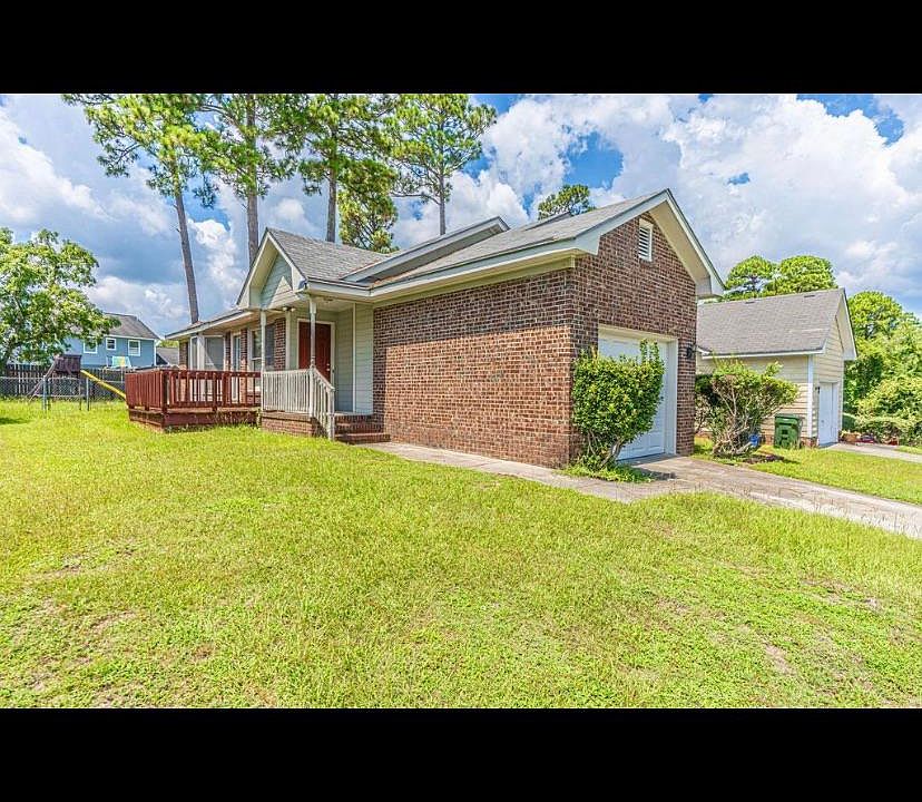 Charming home with front porch, 3 bedrooms, 2 bath and over 1000 sq. ft of living space Large living room with a brick fireplace and dining room with wood floor, kitchen with new appliances, The bedrooms have new floor , The whole home has new paint. This home is close to base in a family neighborhood. A large deck off the kitchen and a fenced area for the children to play. A shed in the back yard for all your yard equipment. Attached single car garage. Available now for $1300 month.