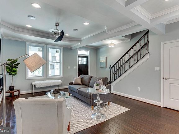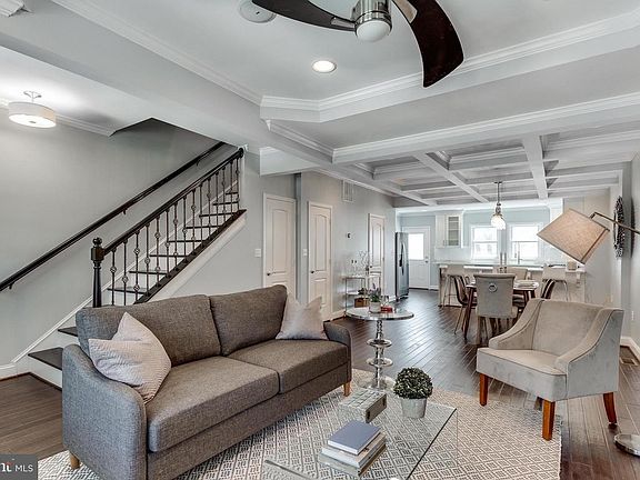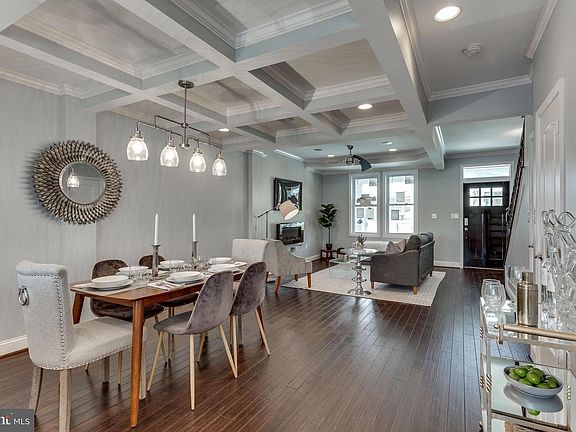 Gorgeous,renovated rowhome is the perfect blend of timeless style & modern amenities. On main floor, you'll find an open living & dining room with gourmet kitchen and coffered ceilings. Upstairs, enjoy 3 inviting bedrooms, including elegant master suite. Walk out basement with light filled bedroom can be used as guest suite/rec room.Off street garage parking and on a quiet street. 2083 sq ft!