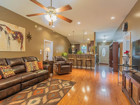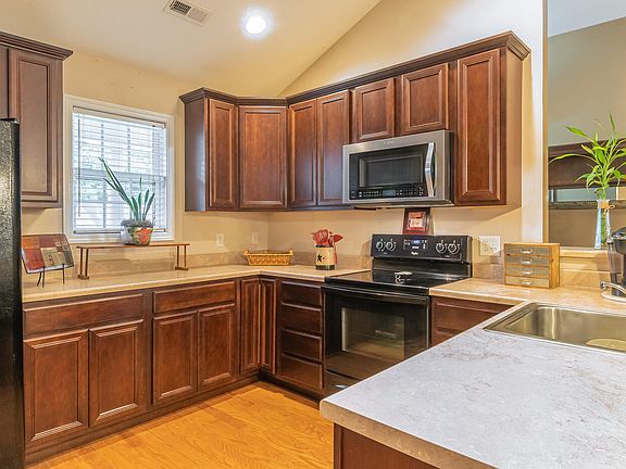 Move-in ready rancher with cathedral ceilings in great room and kitchen split bedrooms; Master has great walk-in closet; beautiful bath with new tiled walk-in shower; Two other bedrooms and full bath; hardwood floors and tile. Patio with fenced backyard; pls verify sf;