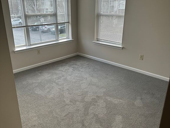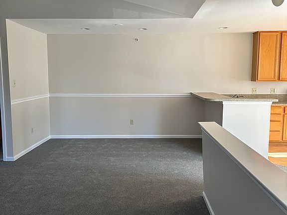 This upscale 2nd story end unit is one of the largest floor plans in the development with extra windows and daylight. Newly painted and carpeted throughout. Spacious great room w/cathedral ceiling, gas fireplace, recessed lighting, alcove w/closet, and French doors to balcony. Dining room w/recessed lighting. Adjacent breakfast bar seats three comfortably. Kitchen boasts generous counter space, 42 inch maple cabinets, gas range, built-in micro, SS sink w/disposal, and maple floors. Includes all brand new appliances. Office/library offers plenty of natural daylight and ample space for a desk, couch, bookcases & more. Double doors lead to master bedroom w/vaulted ceiling, large walk-in closet, and wall of windows overlooking woods. Master bath w/tile floor, walk in shower, & maple vanity & cabinet. Hall bath w/tiled floor tub, & maple vanity. Also includes a laundry room, & 2nd bedroom. First month rent, and two months' security deposit due upon signing a lease.