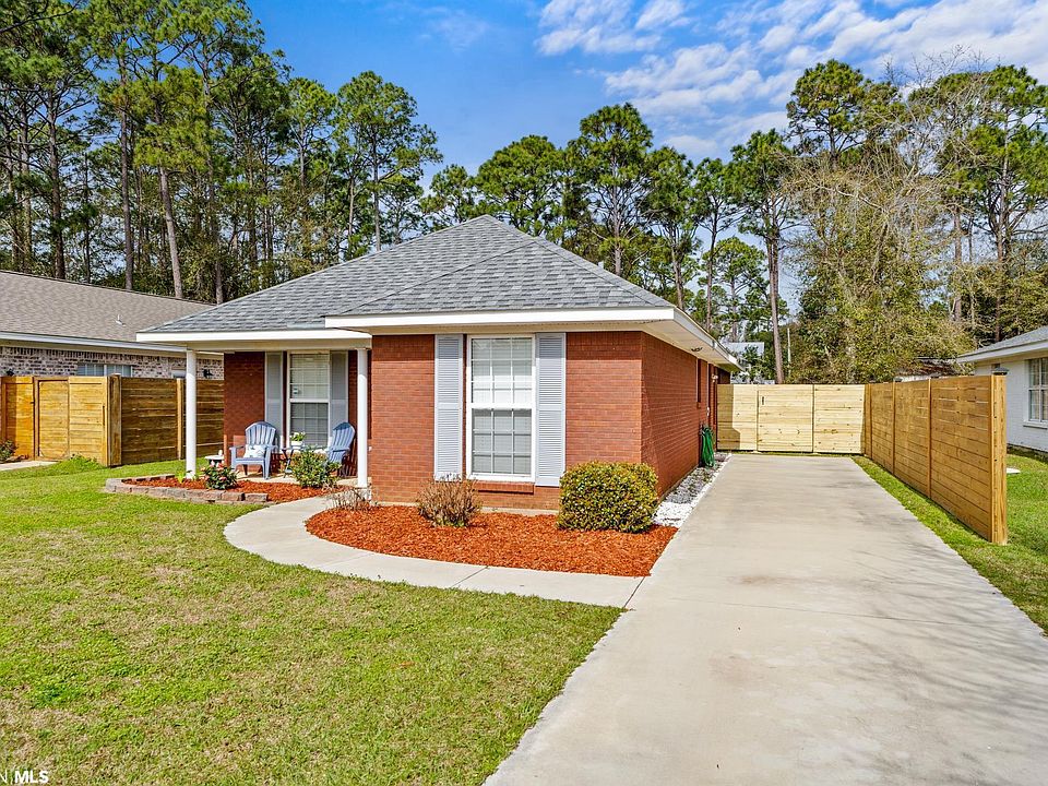 WHAT A GREAT LOCATION! Picture perfect home is located in the Meyer Park area walking distance to the ICW, Big Beach Brewery and Meyer Park. Talk about pride in ownership! New and newer featres include: New roof 2018, brand new State of the Art appliances (Fridge, range, microwave and dishwasher) all new in 2021, new grinder pump in 2022, New HVAC inside and out in 2021 and the list goes on. Trendy grey, freshly painted cabinets accent the kitchen perfectly. No carpet here - matching neutral tile floors throughtout the entire house. The split bedroom plan is perfect for families or guests. In the large primary suite you'll find more than enough space for all your furniture and the bathroom features his and hers walk in closets and double vanities. The large windows and huge, open floor plan with vaulted ceilings make the living area feel spacious and light. Got pets?? Check out the large, private fenced in back yard that also includes a storage shed. There's nothing to do here except move on in and start enjoying "Island Life". Walk to the brewery and enjoy some live music or stop by the nearby coffee shop. The beach is a quick 7 minutes away and the miles and miles of biking/walking trails of Gulf State Park and just around the corner. In the summer enjoy movies and outdoor concerts in the park just two blocks away in Meyer Park. Call for your showing today!