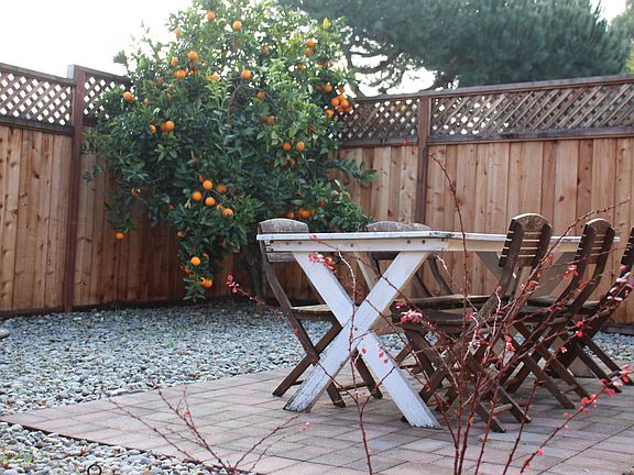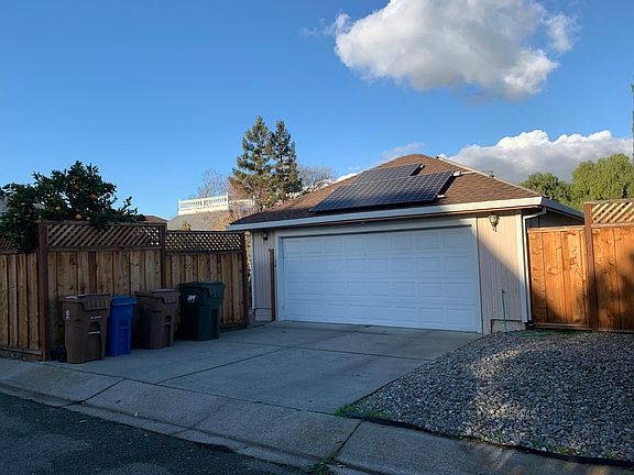 This beautiful and spacious (~2900 sq. ft.) custom home is located on a quiet cul-de-sac, walking distance to Benicia's waterfront, community pool, downtown shops and restaurants. This environmentally friendly home comes with recently installed photovoltaic solar panels and solar heated water so both electricity bills and gas bills are low. The home has A/C, and with its thoughtful construction and insulation, it stays cool in the summer, and warm in the winter. This home has a large front yard with drought resistant plants and fruit trees. This home has a superb floor plan with great flow. The home features a beautiful front entry hall, with a cathedral ceiling and an angled staircase leading to the second floor. Just off the foyer is a music room or front parlor with large windows looking out to the front yard. The home has a formal dining room with crown molding, and a beautiful carved ceiling, as well as French doors leading to a private front patio area perfect for outdoor dining. The downstairs has lovely hardwood floors in the foyer, dining room and kitchen areas. The kitchen has a large box window over the sink, perfect for plants or kitchen herbs, and the kitchen windows bring in natural light. The large kitchen has a peninsula counter with generous counter space and seating, and the room has plenty of space for a large kitchen table and chairs. There is a large side-by-side refrigerator (with filtered water and crushed/cubed ice), gas range and stove, built-in stainless steel microwave oven, large pantry, and ultra-quiet dishwasher with stainless steel interior. The kitchen is open to the large family room, which is carpeted and has a gas fireplace with blower that warms the room and adds cozy ambience on chilly evenings. The home has a laundry area located on the first floor with plenty of storage for cleaning/washing supplies. The sunny downstairs bedroom is perfect for a home office or can be used as a fourth bedroom and has a sliding glass door that goes out to the patio/back garden. There is also a second set of stairs off the kitchen that leads up to the upstairs bedrooms and the garage. The Master Bedroom Suite is quite spacious, with plenty of room for loveseats and comfy armchairs to read or watch television. The master suite also has two large closets (one a walk-in) and lots of natural light from the many windows that overlook the back yard. The master bath boasts a large tub with jets, a separate shower area, double vanity with Kohler sinks, and plenty of storage in a linen closet, and under sink drawers and cabinets. Upstairs there is also another full hall bath, and a large linen closet. The two other upstairs bedrooms are generously proportioned, both with large closets, and lovely views of the trees and front yard. Outside there is a tiled backyard patio area off of the living room perfect for barbecuing, as well as an upper area with an orange tree, and seating area with beautifully arranged paver stones that's perfect for a patio set and fire pit. The backyard is quiet and is a wonderful area for stargazing. The two-car garage is located in the rear of the home and has desirable alley access. Full lawn care is provided. Available February 1st. More information on Benicia can be found at: and Renter responsible for gas and electric. Last month's rent due at signing. No smoking and no pets please.