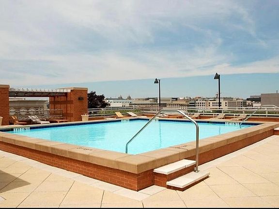 Come see this perfect studio condo unit located in the coveted Lafayette Condominium. The full-service building offers countless amenities to residents, which include a rooftop pool with sweeping views of the city, rooftop deck w/grilling station, fitness center, 24-hour front desk, and concierge service. Walking in, you will immediately notice the amount of sunlight the south-facing windows let in. The unit has beautiful hardwood floors throughout, plenty of closet space, in-unit washer / dryer, soaking tub, open kitchen with granite counters, pantry, and breakfast bar. You will absolutely love the massive private walk-out balcony with views of the courtyard, which makes for a ideal place to relax during the warmer months. The custom-made Murphy bed is included. Just steps to restaurants, museums, shopping, Verizon Center, and all that Penn Quarter has to offer! Monthly parking is available at InterPark for an additional fee This unit comes exceptionally its own large balcony which you can enjoy outdoor sunshine.