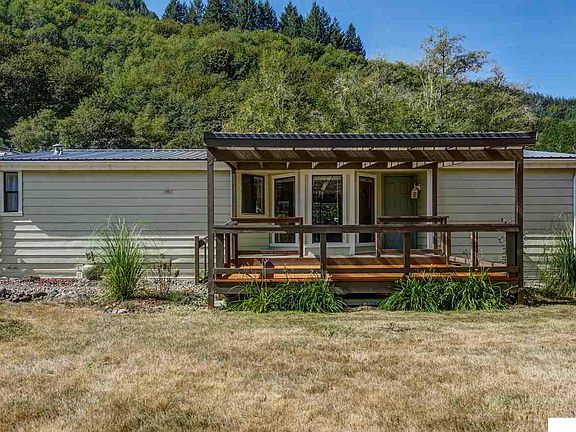 Accepted Offer with Contingencies. Alsea River Front (approx 100 ft) on .74 acre. with 24x30 Garage/Shop. This 1344 s.f. double wide has pride of ownership offers a great room bright open vaulted design and updates to include newer roof , Ductless forced air hear with A/C, interior paint, carpet, vinyl flooring and front deck. Updated kitchen with all newer appliances. Indoor laundry area with washer and dryer. Large front yard and large fenced backyard. Private Community Water Base monthly $15, maintains Yates Road and trees along road.