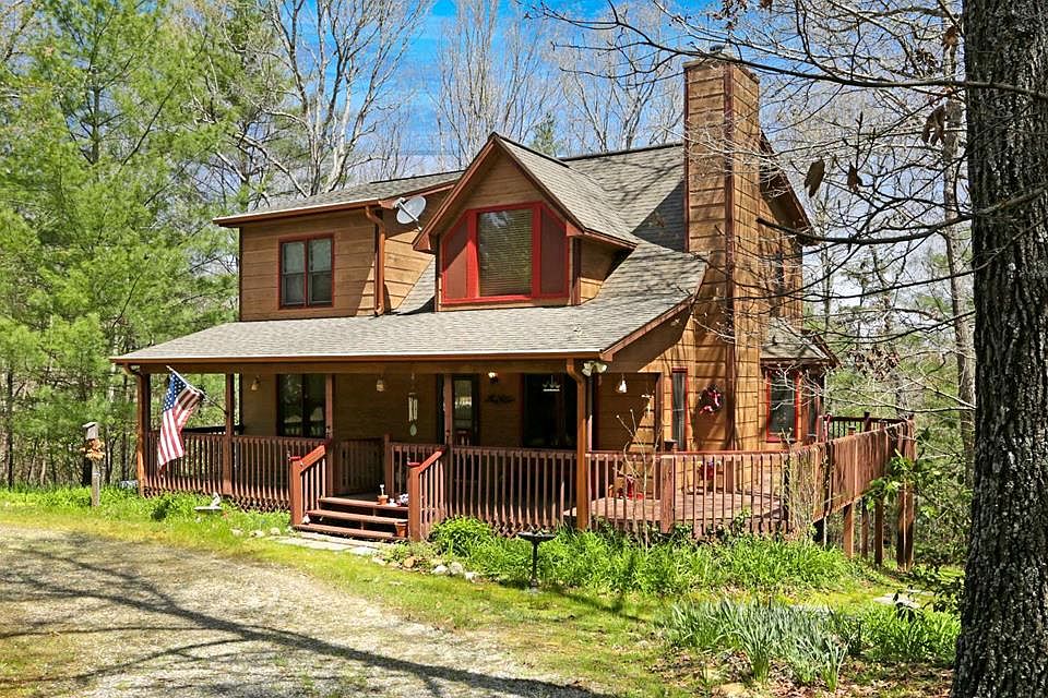 A PRIVATE CABIN IN THE NORTH GEORGIA MOUNTAINS!! Surrounded by tall hardwoods, this private cabin offers a great room with a stacked stone fireplace, cathedral ceilings, lots of tongue and groove, wood floors, beautiful wood, and drywall interior, loft sitting area, wrap-around covered deck, screened-in back covered deck, concrete lower patio, circular drive in front, storage building, county water, and much more. CHECK OUT THIS CABIN IN THE NORTH GEORGIA MOUNTAINS!