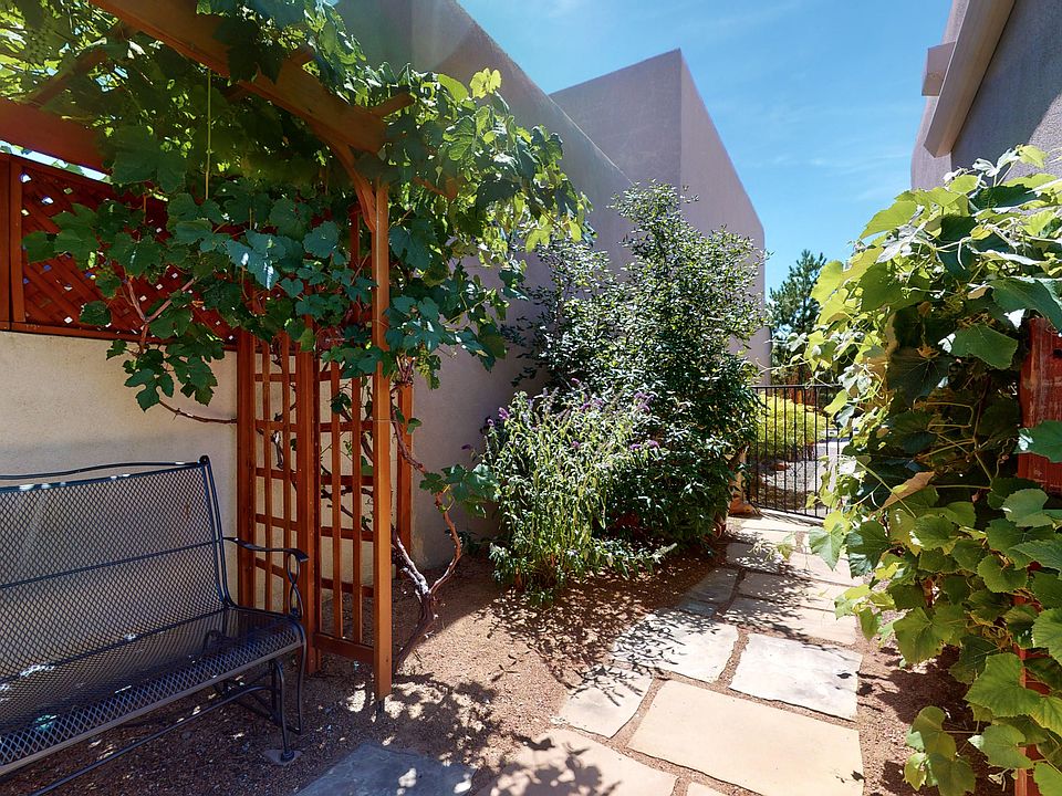 Welcome home to this 3 bedroom 2 bath 2 car garage complete w/ EV charging unit! A hidden gem in Hidden Valley! Sunlight abounds in this immaculate patio home with easy access to amenities of shopping, theaters, restaurants! Community pool, tennis courts, walking trails and open space to hike! Come home & soak in the solar heated hot tub & take in the views of the Sandias! The backyard is so inviting with fruit trees, grapevine,& flowers! A fabulous place to entertain or relax on the deck, comes complete w/ patio furniture! BBQ enthusiasts will love the Big Green Egg Grill that is built in! Storage benches create extra seating space. Beautiful quartz countertops in the kitchen! Bamboo wood floors! With a NEW TPO ROOF (install 7/20/20) you can cross that off your ''to do'' list!