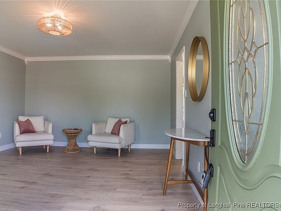Welcome to 616 Glensford Drive, a tastefully renovated 3-bedroom, 1.5-bath ranch home in a prime location close to shopping, restaurants, schools, and Fort Liberty. Inside awaits fresh paint, stylish laminate flooring, and new light fixtures throughout. The updated kitchen features sleek black stainless steel appliances, new cabinetry, and stunning granite countertops. Flowing from the kitchen is a formal living room and formal dining. Both bathrooms have been fully renovated, offering modern touches and comfort. Enjoy the spacious, private backyard—perfect for relaxation with your fur babies or entertaining friends and family. This home stands out with its tasteful pops of color, offering a unique flair beyond the typical "gray" remodel. Plus, the attached 1-car garage adds extra storage. Don’t miss this move-in-ready gem!