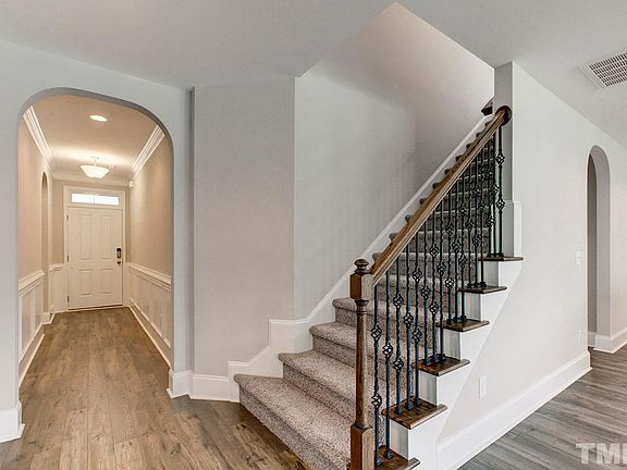 The Reynolds. Story & half design offers main level living w room for guests/family. Expansive covered porches on both front & back create friendly outdoor living & entertainment space. Main level features both master & guest suites w access to covered porch from master. Open family/dining space + center kitchen gathering island. Elegant white cabinets w Quartz countertops. 2 adn'l BRs and large bath upstairs. Walk to Knightdale Station Park, dog parks, playground, YMCA pools, nature areas, amphitheater.