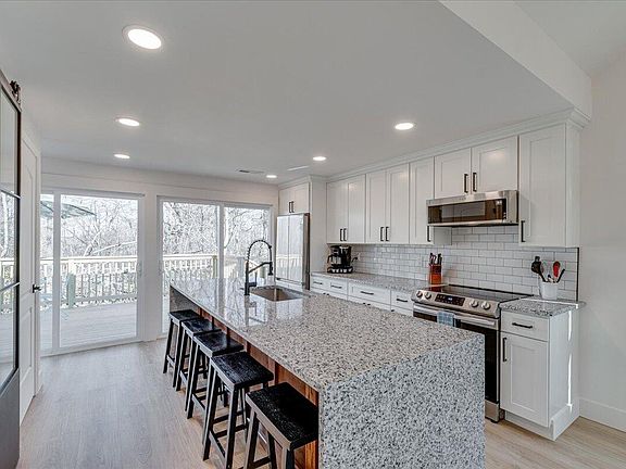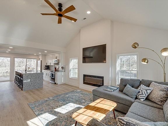 Completely renovated down to the studs 3-bedroom 1 bath home. Open concept living space offers 12' vaulted ceiling, electric fireplace, large 65'' QLED Smart TV included, custom closets (both rods/shelves removable), High Speed (Gigabyte) Internet already run to the home, open-concept kitchen features a designer 9'+ Island with extra wide granite waterfall edge, subway tile and on-trend black hardware, brand new stainless steel appliances (Smart Refrigerator, Smart Stove, Dishwasher, Microwave are all included) along with the added bonus of soft close doors and drawers, new luxury plank flooring and baseboards throughout, Smart Designer ceiling fan, LED lighting throughout, new bathroom vanity, brushed-brass faucets, tub, rain-shower head, fixtures and high-end bathroom vent with Bluetooth Speaker, new smart Nest Thermostat, stacking laundry area and pantry with solid wood shelving, two double patio doors, a large private deck and woods, Athens City utilities, circle driveway, and off-street parking. Unfurnished unit, photo was with previous sellers items still left in the home.