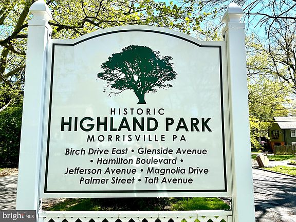 Welcome to this charming and lovingly maintained home in the historic Highland Park neighborhood. The curb appeal is undeniable, with its location on a tree-lined street in the quaint Borough of Morrisville, setting the stage for what awaits inside. The combination of fine architectural details such as the original banister and balusters on the staircase, original hardwood floors under carpet, curved arches, original brass door knobs throughout with the original front door period locks makes this property truly special. The spacious living room, adorned with a marble surround gas fireplace and original built-ins, flows seamlessly into the dining room, creating an ideal space for entertaining. The kitchen with fine wood cabinetry features pull out shelves, Corian counters, an integrated Corian sink, under cabinet lighting with a corner breakfast nook for your morning coffee. The family room, bathed in natural light, overlooks the beautifully landscaped rear yard, providing a tranquil retreat. The expansive rear yard with brick patio is ideal for your outdoor enjoyment. Upstairs, the primary bedroom boasts ample space and natural light, while the other bedrooms showcase original hardwood floors and multiple windows, adding to the home’s warmth and character. The partially finished attic with walkup staircase off the third bedroom, offers additional storage or potential living space. The bathroom features a single vanity, tub/shower combo, and linen closet. The unfinished basement offers several storage closets, a laundry area with a double sink, a workbench, and modern features like new windows, a French drain, and a sump pump. One car detached garage with driveway parking for three cars. It's a true gem in a historic and picturesque neighborhood. Upgrades include New Water Heater (2023), New Basement windows (2023), French Drain & Sump Pump (2023), Central Air replaced with updated system (2019), New Bosch Dishwasher (2016), New garage door (2014), 15 new windows installed (2010), New roof over Family Room addition (2014), New Gas Heater (2012), Kitchen remodeled (1997), Bathroom remodeled (1996), Slate Roof has been inspected yearly, last inspected 2/21/2024.