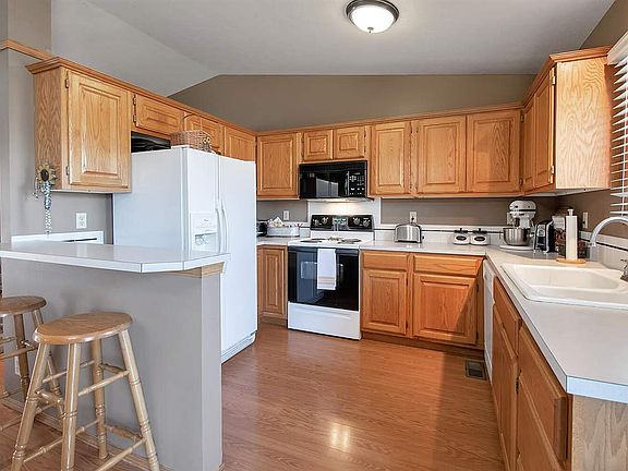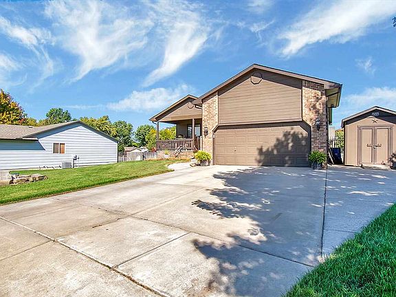 What a great home in Colwich - located just minutes from west Wichita yet has all the conveniences you need just blocks away. Recent updates include new interior and exterior paint, a rebuilt deck, wrought iron fencing, and new water heater! This open floor plan features wood laminate flooring throughout the kitchen/dining/living areas, vaulted ceiling, gas fireplace, and an eating bar. There are 3 main floor bedrooms including a master with ensuite, and there is also another master suite downstairs complete with his/her closets, corner jetted tub, separate shower, and double sinks! The basement also has a large family room, laundry room, and storage room. Other features include a water softener, heated and insulated 2-car garage, storage shed, sprinkler system on a well, horse shoe pit, and covered front porch!