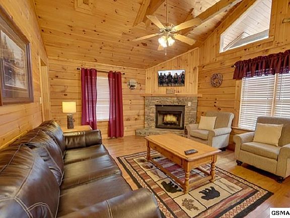 Located within minutes of downtown Gatlinburg and all the area attractions. Easy access year round with level parking and a mountain view off the front deck. This beautiful two level cabin is the ideal investment property. The cabin has an open floor plan with gleaming hardwood throughout, a cozy, gas log fireplace in the corner of the great room and a new large deck off the back for privacy to enjoy your mountain setting. Suite Harmony has 2 Master Suites- each having a private, in room whirlpool tub. The perfect size and layout for vacationing with friends or family.