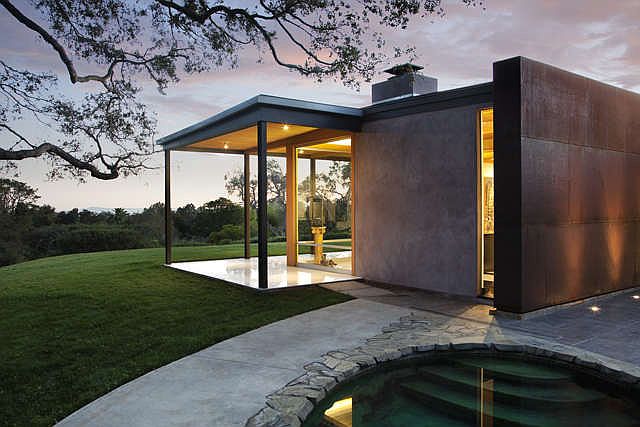 Designed by the famed architect, Lutah Maria Riggs, situated on approximately 1.3 private acres, this beautiful, private setting is enhanced by inspiring, oak framed ocean and mountain views. The artistic, light and bright 5 bedroom, 5 bath, single level, contemporary home has been tastefully and impeccably designed. Quality details include radiant heated floors of Carrara marble slabs, high