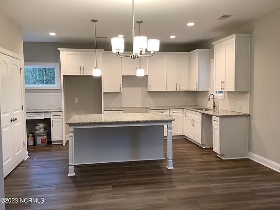 CC 2355 The Brunswick. The entrance of this 2-story home showcases a 2-story ceiling with hanging light fixture.Eat-in kitchen with large island, granite countertops in ''Santa Cecila Light'', subway tile backsplash in ''Arctic White'' set in a herringbone pattern, Seattle ''Snow'' shaker cabinets, walk-in pantry, built-in desk space, and window over kitchen sink with views to the backyard; Stainless microwave, dishwasher, and smooth top range.Covered porch creates the perfect outdoor space and is easily accessible through the breakfast area.Great room with gas log fireplace with decorative mantle and granite surround in ''Absolute Black''.Elegant formal dining room painted in Sherwin Williams ''Dorian Gray'' with stunning coffered ceiling and picture frame wainscoting detail.Half bath with pedestal sink, oval mirror, and tile flooring.Built-in bench and cubbies make the perfect landing area for backpacks and shoes in the garage entryStaircase with wood balusters. Second floor primary suite features a tray ceiling with crown molding, 2 walk-in closets, dual sinks with quartz ''Niagara'' countertops, Seattle ''Snow'' shaker cabinets with center drawer stack, tile shower with bench, private water closet, and tile flooring.Additional 2 bedrooms and home office on second floor with access to hall bathroom with dual vanity, quartz countertops in ''Niagara'', tub/shower combination with tile surround, and tile flooring.Laundry room with washer/dryer connections is conveniently located to all of the bedrooms.Durable luxury vinyl plank floors in foyer, formal dining room, kitchen/breakfast area, and great room.Low maintenance vinyl siding with shake and board and batten accents and stone skirt; .Extended front porch .2 car garage.Energy Plus certified with 1-2-10 year builder in-house warranty. $10,000 builder incentive for closing costs, rate buydowns, design center upgrades. This promotion is offered ONLY with the use of the builders preferred lender.
