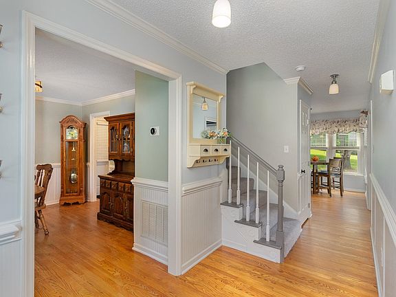 Welcome home to 616 Jordan Ridge Lane where you will be greeted with beautiful landscaping and absolutely charming curb appeal! This traditionally laid out floor plan has beautiful hardwoods throughout the 1st floor, recently updated kitchen and baths, large family room with wood burning fireplace, separate dining room, 2nd floor laundry, vaulted primary suite ceiling, dual vanities in both full baths, oversized bonus room over garage, and the list goes on! Covered front porch with swing, large deck, and patio in the backyard are perfect for entertaining or just relaxing and enjoying the scenery. Flower bed in the front is low maintenance and gives full season color! Don't miss the oversized 2 story workshop with power that's located at the back of the property and ready for your imagination! Refrigerator, washer, dryer, and mini fridge to convey with acceptable offer. Lastly, don't forget the 540 extension project which will give even more access to the surrounding areas after its completion!