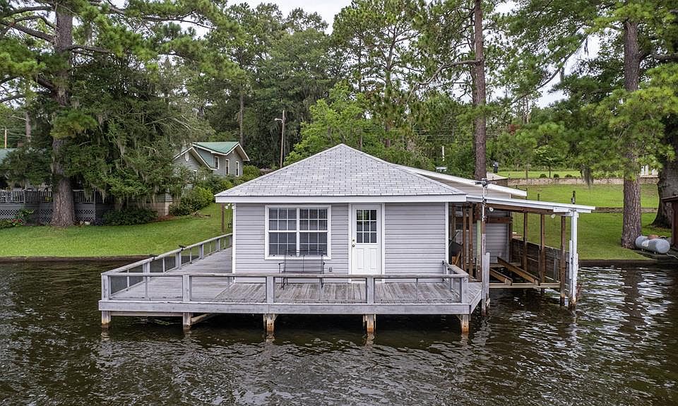 ONE OF A KIND COTTAGE on Beautiful LAKE BLACKSHEAR. This 1 bedroom cottage sits OVER the water. There is a motorized boat lift and covered storage. The deck is on 2 sides which allows for plenty of sun bathing, fishing or just relaxing. A couple of covered storage areas outside and a fish cleaning sink is already set up. This open floor plan includes room for a dining table, plenty of seating and more. The kitchen features a stove and refrigerator. Additional storage in the utility closet and there is a full bathroom. So many opportunities for this property - build on the land and use the cottage for a guest house or boat house. Just a few minutes to Smoak Bridge, local eateries, and shopping. Whether this property is your primary home or a vacation home, you will enjoy your time there. (Listing Agent is related to Seller.) Call today to preview.