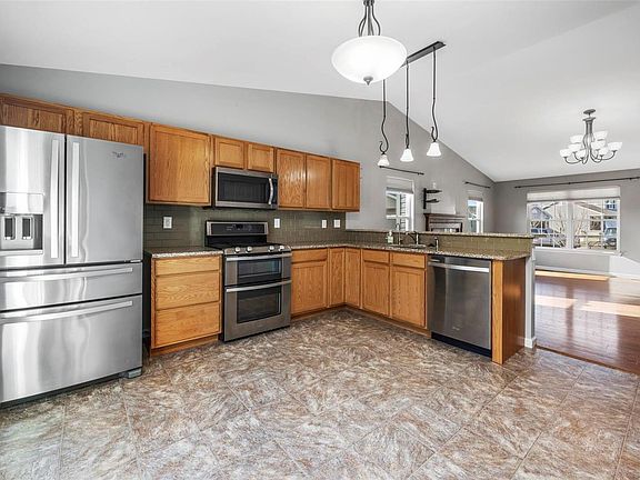 Wonderful opportunity to live in sought after Riverdale! 8-year-old ranch home is located in a cul-de-sac & exteriorly features a 3-car garage, covered front porch & vinyl siding! The property is situated in a way that the fenced backyard faces trees, which can offer a scenic and peaceful view. The home has recently had updates to the flooring and has been painted with neutral colors, which can create a fresh and modern look. Inside you'll find a wonderfully spacious open concept main living space - vaulted ceiling, fireplace & access to the large kitchen. Double oven, pantry, plenty of counterspace & access to the back deck are nice features of the kitchen! The lower level has a walkout entrance and a large unfinished basement, which can provide extra space for storage or future expansion. Main bedroom is spacious and includes a walk-in closet and a private bathroom, which can provide a comfortable and luxurious living space. 2 Guest bedrooms & full bath are down the hall!