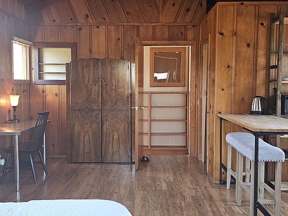 Presenting a beautiful, private entrance studio attached to home. Lots of light from windows - sunny, fresh and clean, shared yard. Friends and family call it the "treehouse" because of the cedar lined walls, vaulted ceiling and expansive view of trees that surround.
