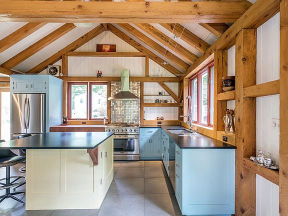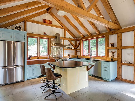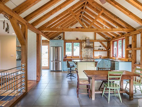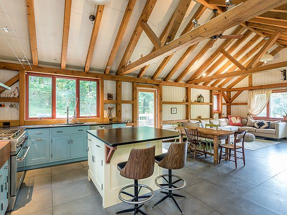 A tree lined driveway leads to a privately sited post and beam home recently remodeled and updated by its current owner including newly renovated kitchen with 6 burner gas range, stainless steel appliances, custom cabinetry, butcher block and stone counters, large center island, vaulted ceilings and custom wet bar area. The newly refinished wide plank wood floors lead to a master bedroom with en suite remodeled bath. A second bedroom is adjacent to a renovated full hall bath with large soaking tub and custom crafted vessel sink area. Updated mechanical systems including heating, air conditioning provide for a comfortable and energy efficient home. A third bedroom is located in the lower level and is accessed from a multi-purpose room with a new tile floor and wood burning stove for a cozy den area. This versatile space provides easy access to driveway, barn and a level open lawn. A grove of river birch trees leads to the 2 car barn/workshop. This well conceived open concept home connects the kitchen, living and dining areas with multiple access points to several decks and an incredible stone terrace with custom asado grill and incredible outdoor dining area. Extensive stone walls, perennial plants and mature specimen trees line this beautiful property. An additional detached two story post and beam building is well quipped for family, guests, home office or studio. Proximate to Metro North trains, fine dining, hiking and the Arts. Designated scenic road.