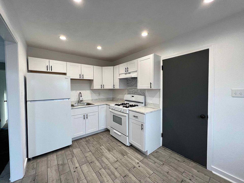 Completely remodeled! Brand new stucco exterior, new roof, garage, kitchen, & bathroom. New Fresh paint and new flooring throughout.. Lots of storage and room in garage with washer and dryer hookups. Huge backyard and patio area. Gets lots of sun for a potential garden. Great and safe location with lots of young famines on the street. More photos soon to come! No pets, or smoking.