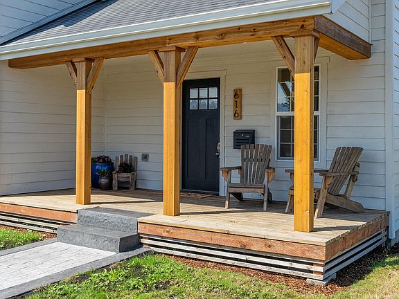 Modern farmhouse charm and custom updates in this top to bottom remodeled 3 bedroom, 2 bath home. Beautifully updated kitchen, w/stainless appliances, quartz counters, and dramatic counter to ceiling subway tile back splash. Vinyl plank floors throughout main level and custom staircase. High ceilings and bright windows in living room. Dedicated dining space. Raised ceilings in main level master suite, and 2 additional large bedrooms on second level. Covered front porch to enjoy all year round and custom stamped concrete patio, front walkway and driveway. New wiring, plumbing, foundation, and much more! Unbeatable location, close to schools, shopping & town. This home is move in ready!