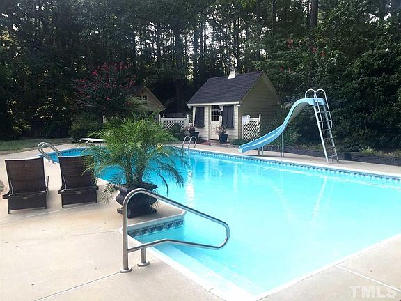A private oasis in this desirable N. Raleigh neighborhood. All-brick home with 2-car attached, 2-car detached garage and circular drive. Gorgeous landscaping surrounds salt water pool with 2 out buildings and gazebo. One master suite downstairs, one up. Large bonus room. HUGE floored attic. Stainless steel appliances, granite tile counter tops, wet bar, built-in benches for breakfast nook, large downstairs laundry room. All this, on almost one acre of land! Close to shopping, schools, parks and more!