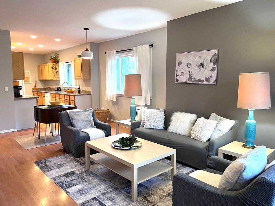 Short-term lease: from 1 to 6 months. Fully Furnished. Open, bright & cheerful home. Light streams into this airy 2 bedroom 2 bathroom house in hip downtown Renton. Walk to numerous cafes, shops, breweries, parks and the Cedar River trail. Great transit hubs/routes take you direct to downtown Seattle or Sea-Tac Airport. Minutes to all major freeways. Two direct metro buses to Valley Medical Center too. Privacy & Airbnb equipped: Two Queen beds, two large flat screen TVs, large fully equipped kitchen with cabinets galore, full fridge, dishwasher, stove/range, microwave, Washer/Dryer. Adjacent Dining/Living room with dedicated desk area. 2nd bathroom has a bath tub for evening soaks. Easy Keyless entry. Large covered back deck with grill and lounge seating. Back yard is partially fenced for privacy. Carport + off-street parking in back off of the alley or convenient parking in front. Single level home (no stairs inside home). 2nd covered front porch with seating area too. Walk to all major shopping including Uwajimaya, Fred Meyer, Safeway, downtown restaurants & Farmers Market etc! Easy low maintenance living for you to enjoy! 3rd bedroom and/or private office with bed, desk & TV can be included for additional monthly cost. Currently used as storage. Pets: Case by case basis with additional deposit. First month's + Deposit Only due at lease signing. $200 cleaning fee due upon departure. Min credit score 700, no co-signers, renters insurance required. 1-6 month lease. No Smoking. Exterior/lawn service maintenance shall be provided. Tenant responsible for utilities + maintaining interior. Maximum occupancy 3.