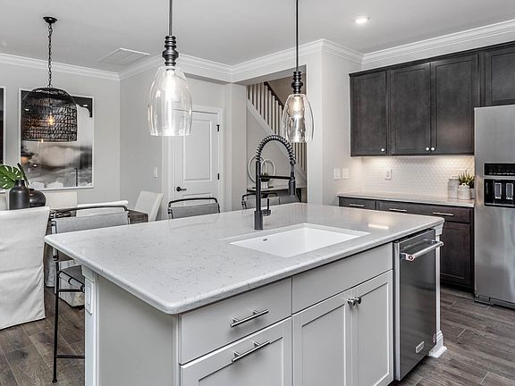 Gorgeous Northbrook plan is perfect for entertaining with a spacious Gathering Room featuring a beautiful double-height coffered ceiling, leading out to a Covered Porch! The chef's kitchen has an over-sized island, quartz countertops and Kitchen Aid gas appliances! Tons of additional living space can be found on the second floor with two additional beds/baths, a Media Room, Loft and Flex/Office!