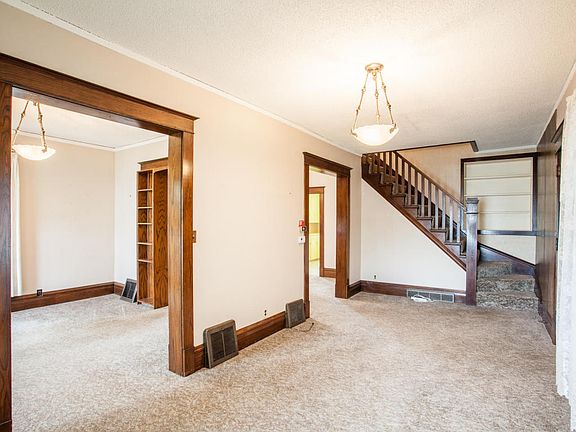 Excellent wrap around porch, spacious living room, open dining room, eat in kitchen, attached garage with alley access. Located at the north side with easy access to schools, sports arena and parks.