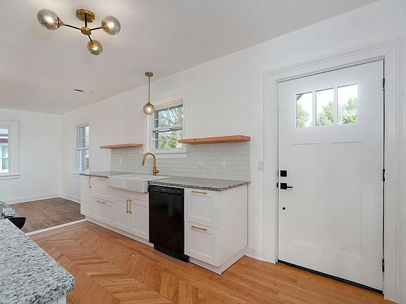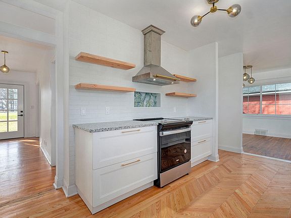 This is the last available home for purchase in the unique and private Round Edge Subdivision. It is a beautiful, all brick ranch home in unique and bohemian style located on beautiful .53 acre lot with mature trees. This house has been completely remodeled and boasts original and new hardwood floors and tiled bathrooms. The kitchen has new, slow-close cabinet drawers with granite countertops and tiled backsplashes on both walls. Kitchen also features open shelving, new appliances (front controlled oven/range, dishwasher, vent hood, sink disposal) and pantry with outlets for small kitchen appliances. Enjoy company with the large, open-concept in the dining/kitchen and dining/living rooms. The glass-faced electric fireplace creates a warm and homey feel in the living room. Large master suite hosts private bathroom with fully tiled floors and walk-in shower with beautiful sliding glass door, extra large shower niche, and bench. The adjoining walk-in closet with niche for stacked washer/dryer makes laundry very convenient. The guest bath is fully-tiled with a large free-standing bathtub and beautiful gold fixtures. The home has all new, large sliding windows which bring in tons of natural light and allow great view of the peaceful and secluded neighborhood. The new floating back deck makes a comfortable place to enjoy the large back yard. Home has BRAND NEW HVAC (gas furnace & A/C), all new plumbing, and a whole-house water filter system, new roof shingles installed in summer 2021. Garage/storage space is located in HOA building just across the private drive. Located in secluded and historic neighborhood with little to no traffic on the private drive in Mount Vernon, MO, only 30 minutes to Springfield, Joplin, and Table Rock Lake, and Stockton Lake.