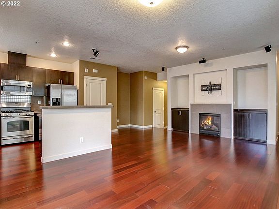 Sophisticated Craftsman Condo featuring Chelsea floor plan, open concept living on main level, beautiful wood floors, Hunter Douglas blinds throughout, stainless appliances, pantry, eat bar, gas frpl, surround sound + built-ins & deck off dining area. 2nd level features 2 primary suites w/ full bath, W/D included & NEW carpet on upper stairs, hall & bdrms! Attached garage w/ direct entry to condo. HOA includes Club House, Rec. Center, Gym & Pool.HOA dues include sewer, garbage, water & internet. [Home Energy Score = 6. HES Report at https://rpt.greenbuildingregistry.com/hes/OR10200001]
