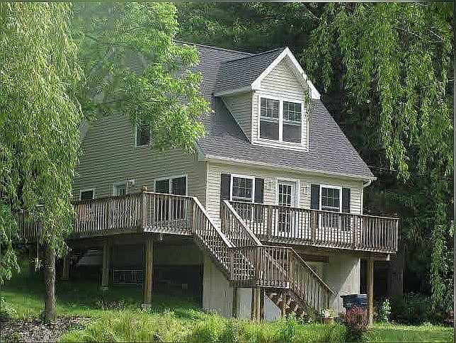 Fabulous Cozy Cape Cod style home, with over 1100 sq ft with 2 bedroom and 2 bath. Rebuilt in 2010 still has the new feel, this home provides a private setting located just minutes from the Village of Millbrook. Ideal for Bike Enthusiasts tucked away on a country road! Less than 10 minutes to Metro-North and an hour and half to New York city rests this retreat or year-round getaway. Furnished and meticulously cared for and maintained by its owner. The beautiful landscaping and large 650 sq ft wrap around front porch make for a great place to relax and enjoy your surroundings and barbecue with friends. Sunsets are gorgeous! Open floor plan, French doors, modern kitchen w/movable island and hardwood floors. The downstairs has a large walk-in closet, full bath, and a living area, office/den, or guest room. Upstairs has a full bath, a bedroom and another large bedroom/office/den with huge closet space and fantastic scenic views from every window. New appliances, bathroom with jacuzzi tub. Basement for storage with washer and dryer. Casual living, close to all amenities, Hiking trails, Mohonk Mountain house, Organic Farms, Restaurants, Millbrook Winery, Cafes, Antiquing, Town recreation and Pool, Millbrook Central School best in the county.