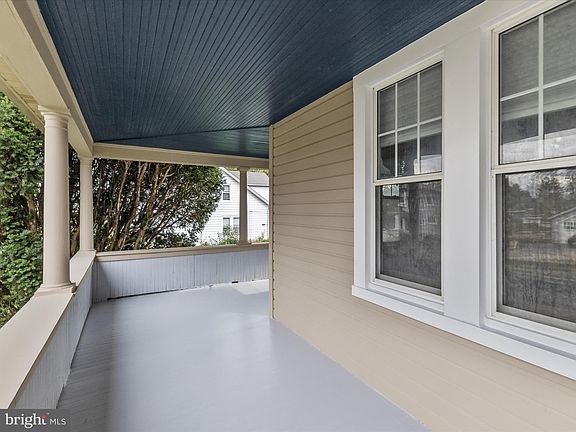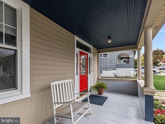 Arrive at this stunning property via a charming front wrap-around porch and step into an architecturally rich foyer featuring classic columns, curved entryways, and picture molding. The dining room boasts high ceilings, an abundance of natural light, and hardwood floors that seamlessly flow into the spacious living room. The sizable kitchen offers plenty of room for a dining table, a peninsula, ample storage, and convenient access to the mud room and a full bath. The penthouse-level primary bedroom is adorned with plush carpet, several walk-in closets, and an adjoining sitting room or possible office. Three additional bedrooms and a hall bath with a claw-foot tub complete the upper-level sleeping quarters. The lower level presents numerous possibilities for creating your dream space. Entertaining is a breeze in the expansive rear and side yards, complemented by a large driveway and patio. With major commuter routes including US-40, I-695, and I-70 nearby, this property is a must-see!
