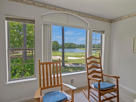 About that view! It honestly can't get any better than this ... a panoramic view of True Blue Golf Course from the picture window in the living room AND the screened porch. Furnished and equipped 3 BR, 2 BA unit that has always been used as a full-time residence. Nicely maintained - new HVAC and hot water heater. Open floorplan with living room, dining room, and kitchen all open to one another. The primary bedroom has a large walk-in closet and access to the screened porch. Additional storage outside of the unit for your clubs and beach gear! Convenient location just across from the pool. This unit would be ideal for a golfing getaway, a permanent home, or an investment property. Long-term or short-term rentals are allowed. We've got this one all teed up for you ... come and take a look!