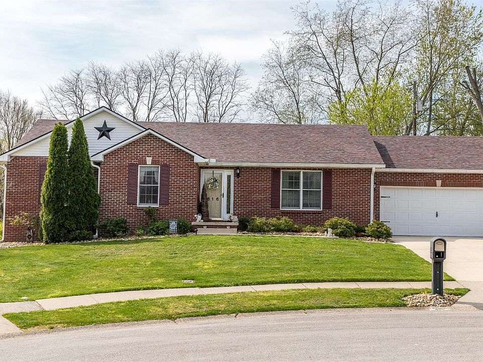 This adorable ranch home has 4 bedrooms, 2.5 baths, formal living room, family room, dining area, remodeled kitchen, and home office. You can move right in and relax because the sellers updated the home in 2017 with new laminate/carpet/vinyl tile, bathroom vanities/toilets, custom shaker style kitchen cabinets, granite countertops, stainless steel appliances, lighting, and a fresh coat of paint. A new roof and 6-inch gutters with leaf guard were installed 6/2019. Located in a quiet cul-de-sac on a large lot in Calmes Subdivision, this home is a rare find in this condition. Call today!