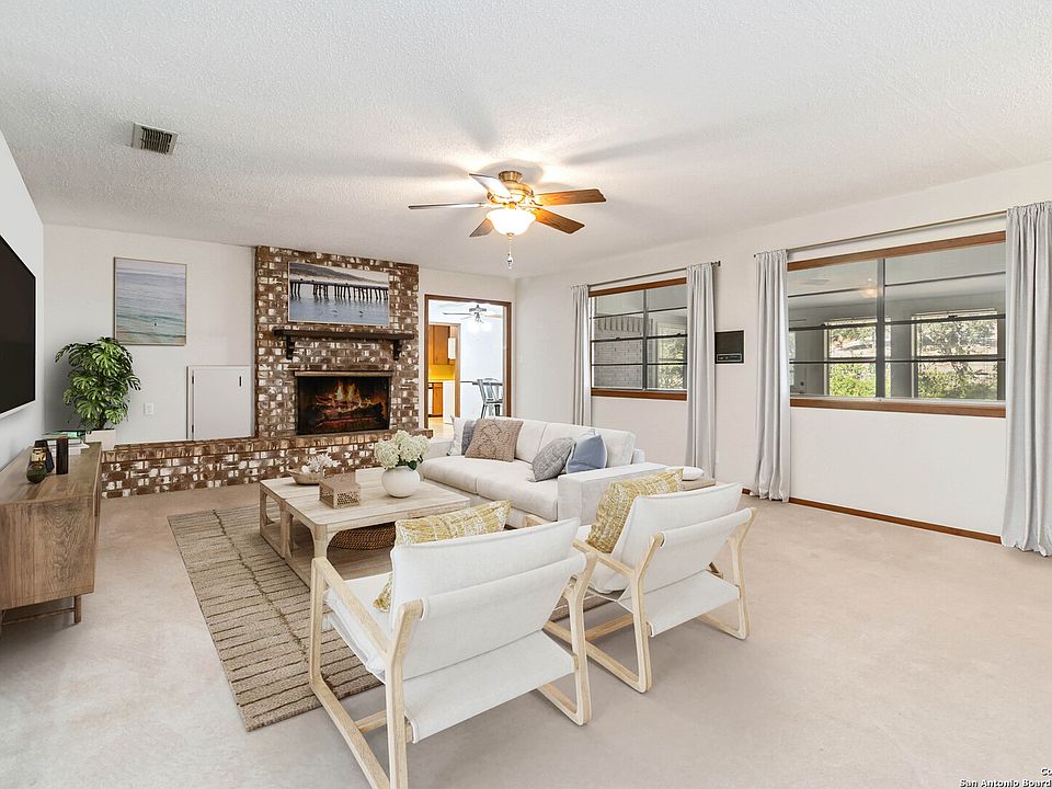 NO HOA! * DRIVE YOUR GOLF CART TO GRUENE FROM THIS HOME OR RIDE YOUR BIKE. Move-in ready, this home offers a multitude of options for those looking for outdoor activities within a short distance. From private access to the Guadalupe River to numerous parks to historic Gruene - there is no limit to choices AND NO mandatory HOA. THIS ONE WON'T LAST! Featuring a large livingroom with a beautiful fireplace PLUS an oversized backyard for entertaining, this home has endless potential. Ideal for the first-time buyers who need affordability and lifestyle, or for the "down-sizers" looking for one-level living without sacrificing space - THIS ONE OFFERS SPACE, LOCATION AND FLEXIBILITY! Come See!