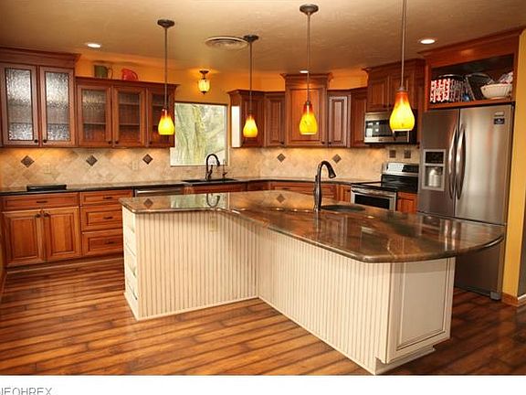 WELCOME & be prepared to have a lovely time at this outstanding brick ranch. This is a unique large home in Minerva with a great kitchen updated 2011, brazilian granite counters, beautiful cherry cabinets & tile floor. Two large master bedrooms with generous closet space and full baths. The main floor is spacious and great for entertainment. If you need a larger home - this is the one!! New furnace and new carpet downstairs. What a wonderful view of the area. "Una con una vista espectacular."
