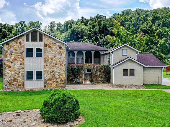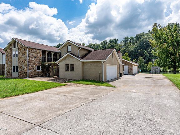 Here is your opportunity to own a unique ''hacienda'' style home on the Clinch River, just minutes by boat from Melton Lake. This home offers expansive space both inside and outside. Main level features den with wood burning fireplace, over-sized kitchen, sunroom, and 2 spacious bedrooms with en-suites and walk-in closets. Upstairs is a large rec room, 2 additional bedrooms/bathrooms, tons of extra storage space, and a large breezeway with water views. There are 2 garages; the original 2-car, and a 2nd garage that is 1,152 sf, with HVAC, tall ceilings, and oversized for 3 cars. Exterior features include a covered porch, large deck, gazebo, and floating dock (with TVA Permit). Fresh paint & flooring throughout, and move-in ready. Exterior is hard-coat stucco (not EFIS/Synthetic).
