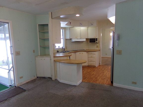 This is a 1975 double wide with a 360 degree view of the Manatee River Inlet. The home has a 2016 central A/C unit, which has been serviced regularly. Across the full side of the home is an enclosed sun room with an unrestricted view of the water, and a perfect spot to watch spectacular sunsets, dolphins playing, as well as enjoying the bird life. Carpeting is throughout most of the home with the exception of the dining area which has bare sub flooring. The formal dining area has a built-in china cabinet and the area flows right into the living area. Both bedrooms have full wall closets, and the master has an en-suite. At the back of the extra wide carport is a screened lanai which has an oversized storage shed with a washer/dryer hookup, rinse tub, hot water heater and commode. Although this home requires renovation and updating, the view of the river inlet makes the possibilities endless. Located in the age qualified community of Colony Cove. Lot rent is $956.