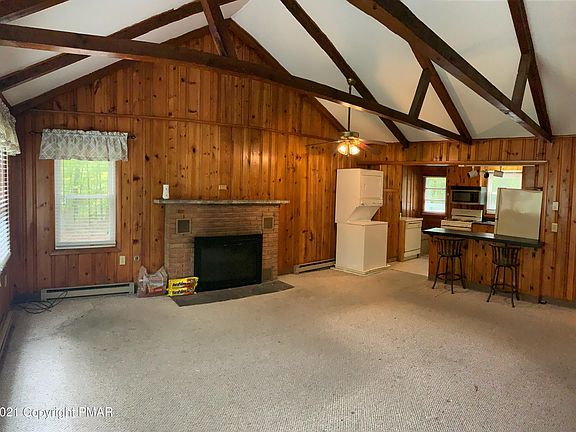 Country ranch offers 2 bedrooms, 1 bath, large living room with vaulted ceilings, exposed beams, custom built in bookshelves and stone fireplace, kitchen with tons of cabinets and breakfast bar, large rear deck, updated windows.