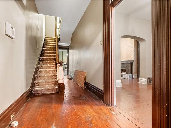 Step into the timeless charm of this 3-bedroom, 1-bath home built in 1890! Bursting with character, this historic gem features tall ceilings, original hardwood floors, and two stunning decorative fireplaces—one in the living room and another in the dining room. The updated kitchen boasts stainless steel appliances, butcher block countertops, and a perfect blend of modern convenience and vintage appeal. One of the bedrooms offers access to a private balcony, ideal for your morning coffee or evening unwinding. The flexible third-floor space provides endless possibilities—create a home office, studio, or playroom! The property is move-in ready but offers plenty of potential for updates to truly make it your own. Located in a desirable neighborhood, this home is a rare opportunity to own a piece of Pittsburgh’s history while adding your personal touch. Schedule your showing today and bring this beauty back to life!