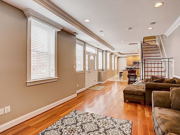 Unique, STAND ALONE, light-filled home on quiet block! Roof deck with views of Patterson Park and Downtown. Cherry wood floor throughout, 21 windows, attached garage, whole house stereo sound, and high ceilings. Chef's kitchen has granite counters, gas range, and dual convection ovens. Tons of counter space with ample GFCI power outlets. 6 head shower in MBR including rain shower head.