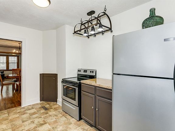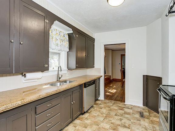 CENTRALLY LOCATED BUNGALOW WITH CHARM AND CHARACTER THROUGHOUT. COZY COVERED FRONT PORCH WITH PORCH SWING OVERLOOKING TREE LINED STREET AND NEWLY SODDED YARD. LIVING ROOM FEATURES ABUNDANCE OF WINDOWS, ORIGINAL WOOD FLOORS, AND ORIGINAL BASEBOARDS ALL IN GREAT CONDITION. FORMAL DINING ROOM BOASTS BUILT IN HUTCH AND WINDOW SEAT WITH STORAGE. FULLY REMODELED KITCHEN WITH PAINTED CABINETS, STAINED CONCRETE COUNTERTOPS, AND STAINLESS STEEL APPLIANCES. 2 BEDROOMS, AND 1 FULL BATHROOM WITH LAUNDRY CHUTE FINISH OUT THE MAIN FLOOR. UNFINISHED BASEMENT OFFERS PLENTY OF STORAGE AND ADDITIONAL SHOWER. THE BACKYARD IS NICE AND PRIVATE WITH A WOOD DECK. 1 CAR DETACHED GARAGE WITH OPENER. ADDITIONAL UPDATES INCLUDE NEWER WATER MAIN, RE-POURED DRIVEWAY AND SIDEWALK.